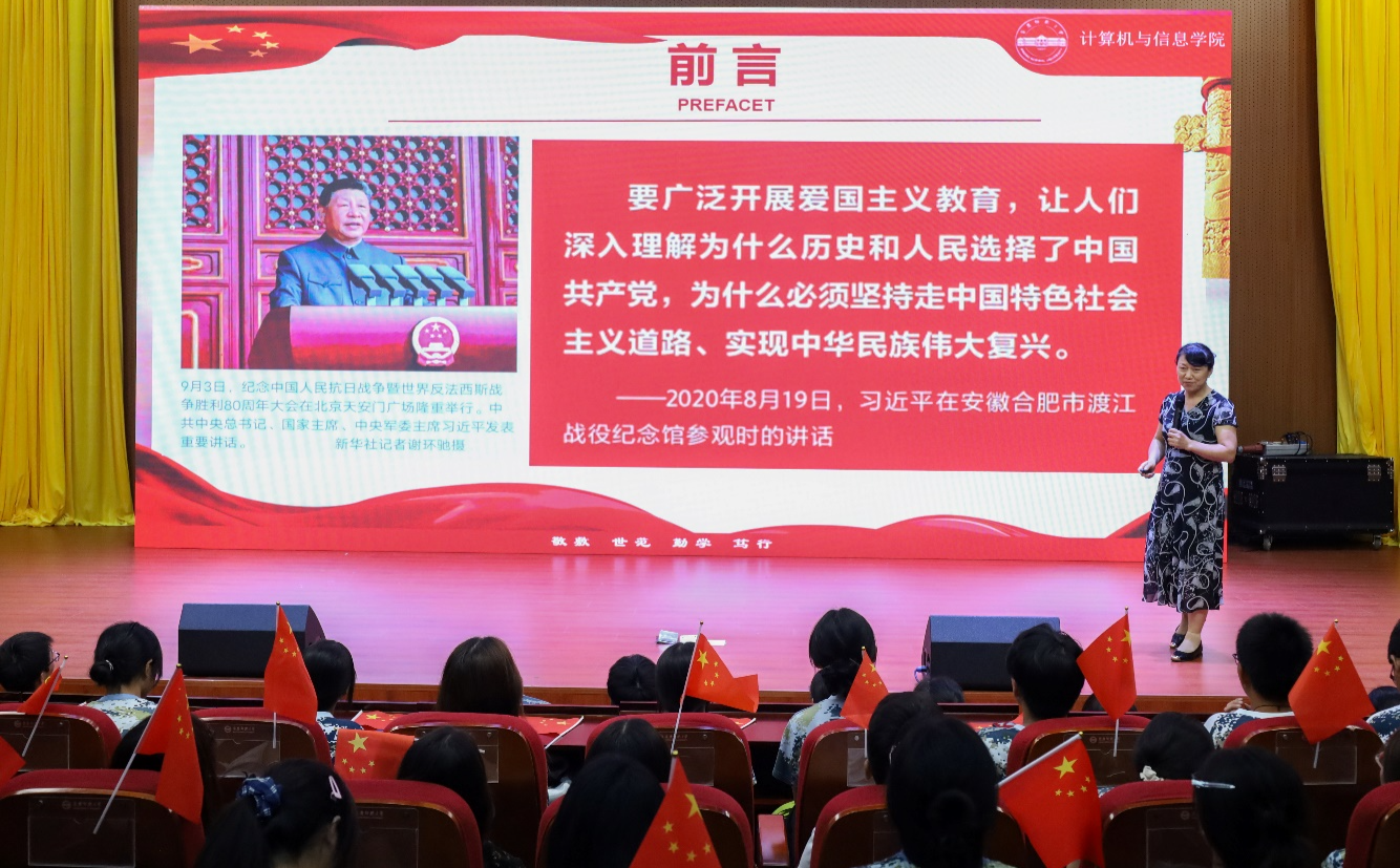 伴随着激昂嘹亮的国歌声,典礼正式拉开帷幕。学院党委书记陈银凤借此契机,为新生开展国庆节爱国主义主题教育。她勉励全体同学,要铭记革命先辈的奋斗历程,传承红色基因,从历史中汲取前行的力量;要把爱国情怀融入日常点滴,以严谨认真的态度钻研专业知识、积极参与集体奉献;在数据时代坚守初心,严守技术伦理底线;更要在数据领域践行报国使命,紧盯“数字中国”建设需求攻坚克难,努力成长为既拥有过硬技术本领,又怀揣深厚家国情怀的新时代计算机人才,用青春力量为国家数字事业发展挺膺担当。