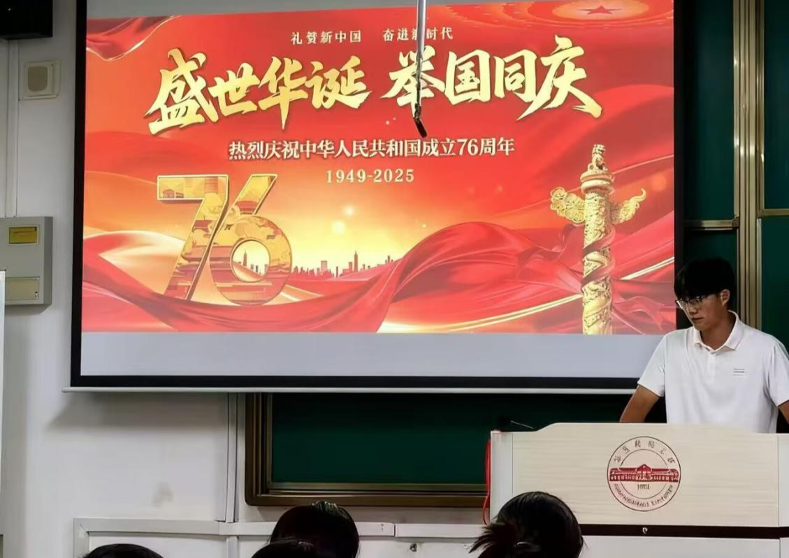 2024级多个团支部则聚焦“学党史、知国情、勇担当”,开展沉浸式主题学习会。各班级通过深入学习新中国成立以来的光辉历史、梳理76年以来的重大成就与时间轴,带领同学们回顾祖国从站起来、富起来到强起来的伟大飞跃。活动中,同学们踊跃交流:“从‘两弹一星’到‘嫦娥探月’,从脱贫攻坚到乡村振兴,祖国的每一步发展都离不开一代代人的拼搏!”“作为计算机专业学生,我们要学好专业知识,将来用专业技术为国家发展添砖加瓦!”热烈的交流中,大家不仅深化了对国情的认知,更明确了“强国一代”的使命与责任。