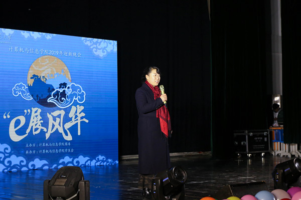 晚会伊始,学院党委书记陈银凤致新年贺词,她回顾了学院2019年师生取得的累累硕果,代表学院领导班子向勤恳付出的全体教职工表达了诚挚的谢意,对积极进取的青年学子进行了充分肯定,向全院师生员工致以新年的问候与祝福。一元初始,她希望全体师生继续秉承优良传统,发扬“敬敷世范,勤学笃行”的校训精神,推动学院高质量的建设与发展,为高水平大学建设做出更大的贡献。