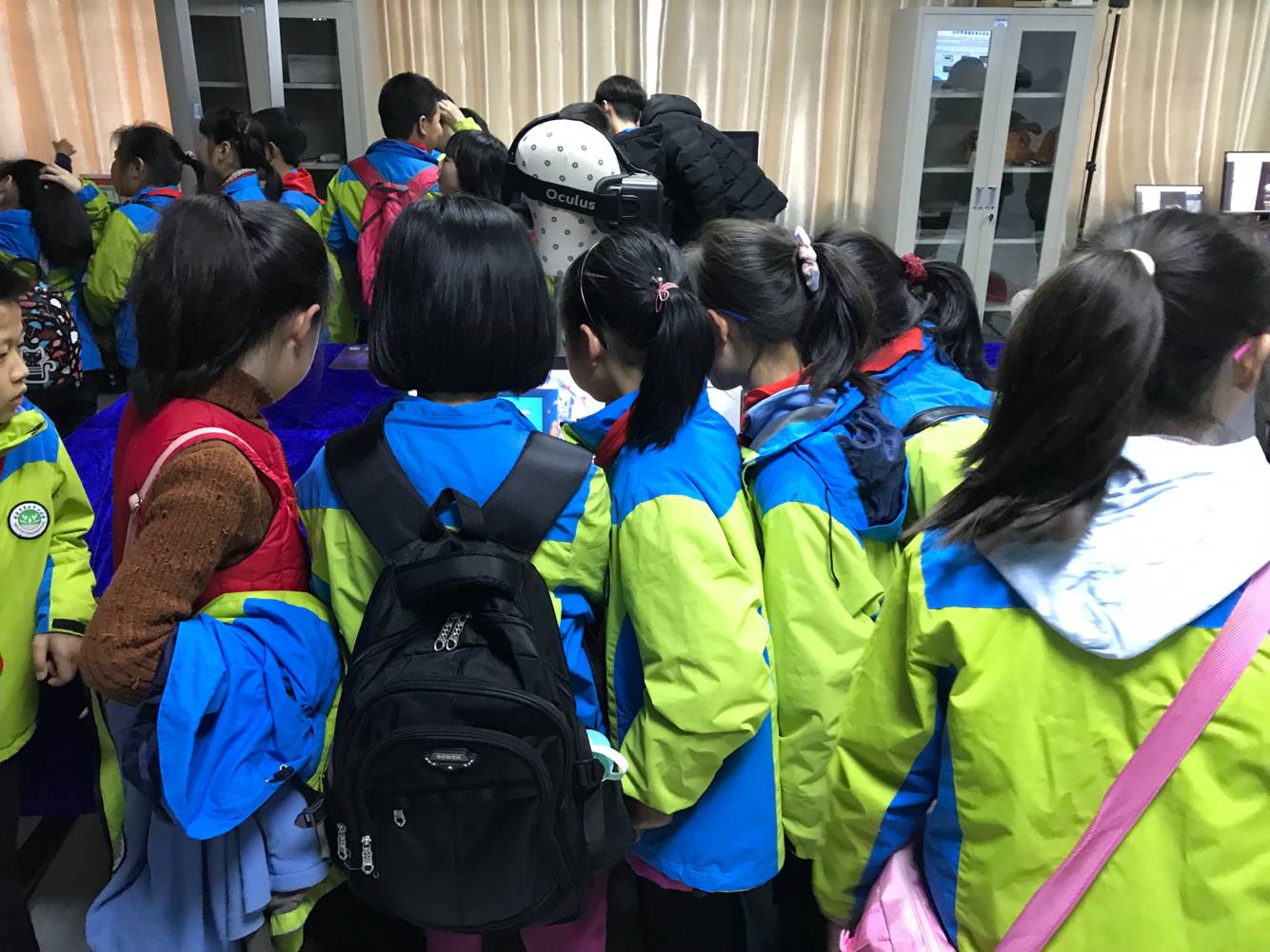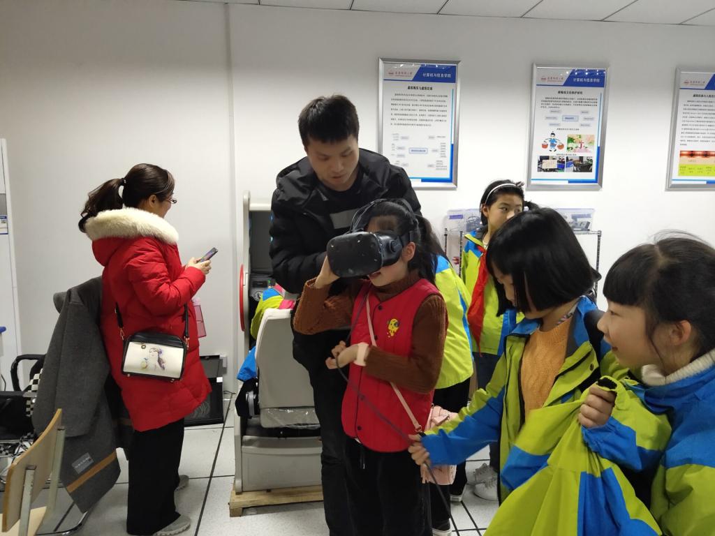本次活动重点对实验室团队在“STEAM教育”层面、“文化计算”层面的探索成果进行了展示。活动开始前,菱北小学的小朋友们就对此次参观活动表现的非常激动与兴奋。在活动正式开始后,小朋友们对实验室里各种新奇的设备充满了好奇与浓厚的兴趣,争相体验当今世界最前沿的科技:虚拟现实交互实验。陪同来访的小学教师们也纷纷表示,希望有关这些科技的知识能够早日走进小学的课堂,使孩子们从小就对科学充满幻想,为国家培养更多创新型人才。在活动期间,开云kaiyun官方网站的志愿者们也是为小朋友们展示了如何使用这些设备,现场气氛十分活跃,欢声笑语不断。最后,小朋友们和学院志愿者们合影留念。