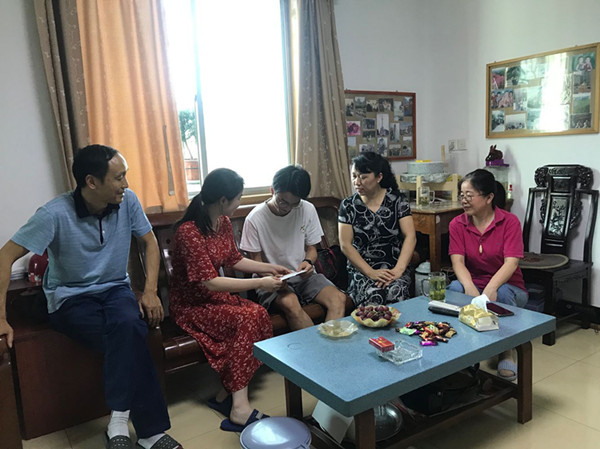 在走访过程中,陈银凤一行认真倾听家长和学生对疫情期间学习、生活状况的介绍,检查了学生在家学习的听课笔记和在线学习记录,记录了学生在学习生活中遇到的困难,解答了家长对于网络学习和求职的疑问;向困难生家庭介绍了党和政府的相关政策以及学校实施的助学帮扶措施,并送上了慰问品;肯定了毕业班学生积极考研与就业的良好精神状态,勉励他们再接再厉;鼓励大家做好学习、生活与就业的心态调整,并进行适宜的劳动锻炼。陈银凤还给党员们送去了疫情期间的捐款收据,代表学院党委表达了对党员自愿捐款支持疫情防控工作的感谢,介绍了捐款上交的途径和使用情况,收集了党员们的意见与建议。受访家庭对学院老师们的到来和关心表示感谢,认为学校工作细致,对学生们很关心,并表示要努力培养孩子,用知识改变家庭命运。
