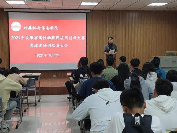 2021年安徽省高校物联网应用创新大赛决赛将于10月16-17日在开云官网举办,为了做好赛事服务工作,促使大赛顺利开展,10月13日中午,学院于L楼322教室举办了2021年安徽省高校物联网应用创新大赛志愿者培训动员大会,学院党委书记陈银凤、副院长刘奎、各个赛事组组长、全体学生志愿者共170余人参加培训会,培训会由学院党委副书记江晋剑主持。