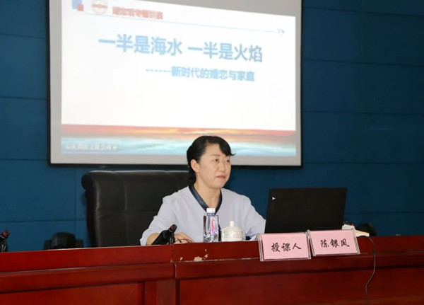 授课中,陈银凤结合自身多年教学和研究实际,以《一半是海水一半是火焰——新时代的婚恋与家庭》为题,围绕“诠释爱情、解读婚姻、和睦家庭”等方面,以通俗易懂的语言为媒介、以典型代表的事例为载体、以深入浅出的讲解为抓手,系统解读了什么是爱情、婚姻和家庭以及如何探寻理性的爱情、组建美满的婚姻、建立幸福的家庭。