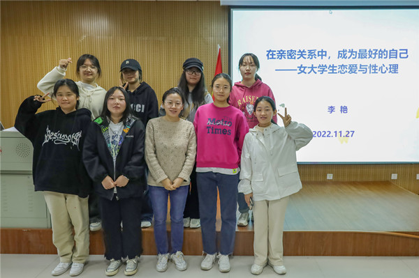 介绍女性与异性交往时的注意事项、普及女性常见的生理疾病、推荐对女性有教育意义的各类书籍……讲座涵盖恋爱与性心理的方方面面,内容丰富。尽管大三学业繁忙,小学教育专业2020(3)班的顾雪琪仍抽空前来聆听讲座。“之前就想来听工作坊的讲座,但有事耽误了,今天总算圆梦了。”一直以来她对女性恋爱心理方面的知识很感兴趣,在听完讲座后,她表示懂得了成熟的爱是激情、承诺与亲密三种关系共存。