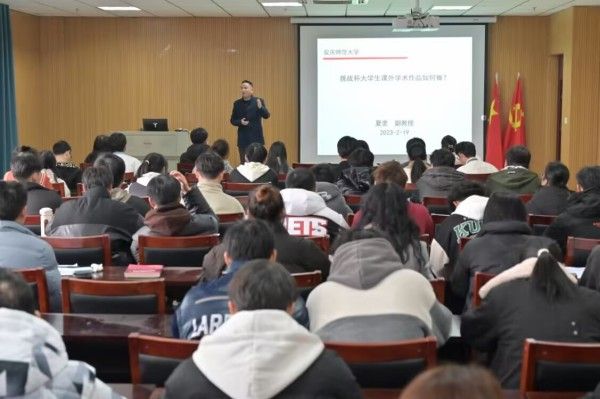 会上,夏斐作了“挑战杯大学生课外学术作品该如何做”的专题报告。他分享了自己多年来指导和组织创新创业比赛的经历,从竞赛的发展历程、竞赛的方式、参赛的意义及赛事的流程四个方面对同学们作了详细介绍与指导,强调该赛事是培养大学生创新思想和创新精神,敢于挑战科技高峰的重要平台。他结合多年指导竞赛经验与近年来“挑战杯”开展情况,着重分析了参赛作品的选题原则、文本撰写的技巧及注意事项,并以实际案例系统归纳了往届获奖项目选题的共性特点,强调好的作品需兼顾时代性与先进性,立足本专业特色,能够切实解决当下面临的问题。报告内容丰富详实,针对性强,使参赛师生对赛事和作品打磨有了更进一步的认识。