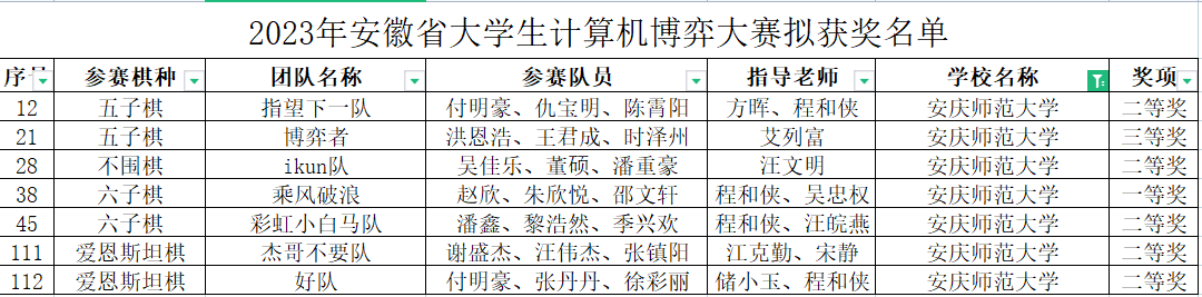 2023年11月24日,开云kaiyun官方网站程和侠老师一行带领学生赴合肥参加2023年安徽省博弈大赛决赛,取得1个一等奖、5个二等奖、1个三等奖的好成绩。