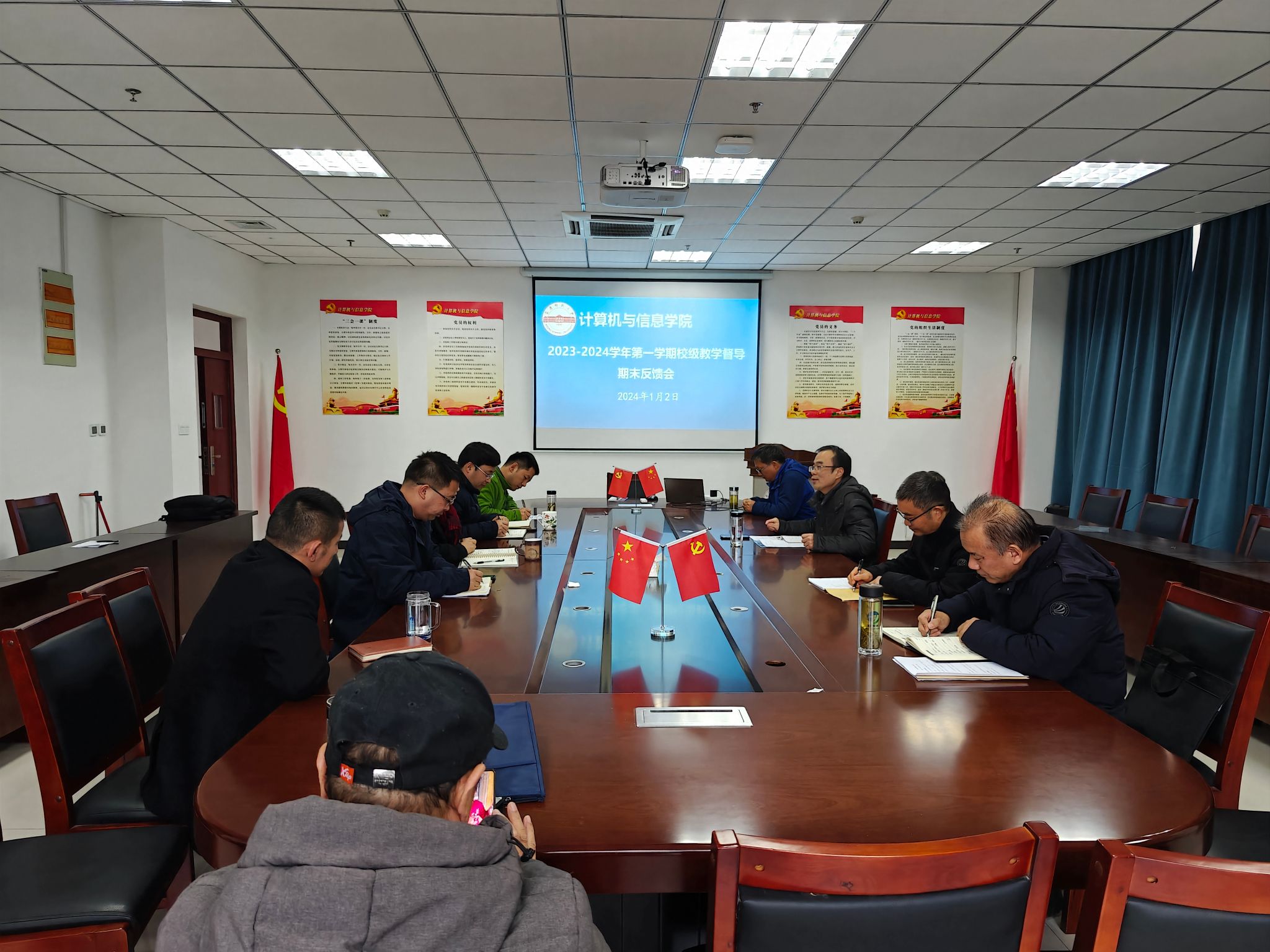 为扎实开展教学督导,有效提升教学质量,1月2日下午,学院在L318会议室召开2023-2024学年第一学期教学督导反馈会,会议由副院长吴海峰主持。校级教学督导钱萌、胡万宝、吴昭方,院级教学督导王一宾、程玉胜,学院党政领导、团学工作负责人以及教学办公室工作人员参加了会议。