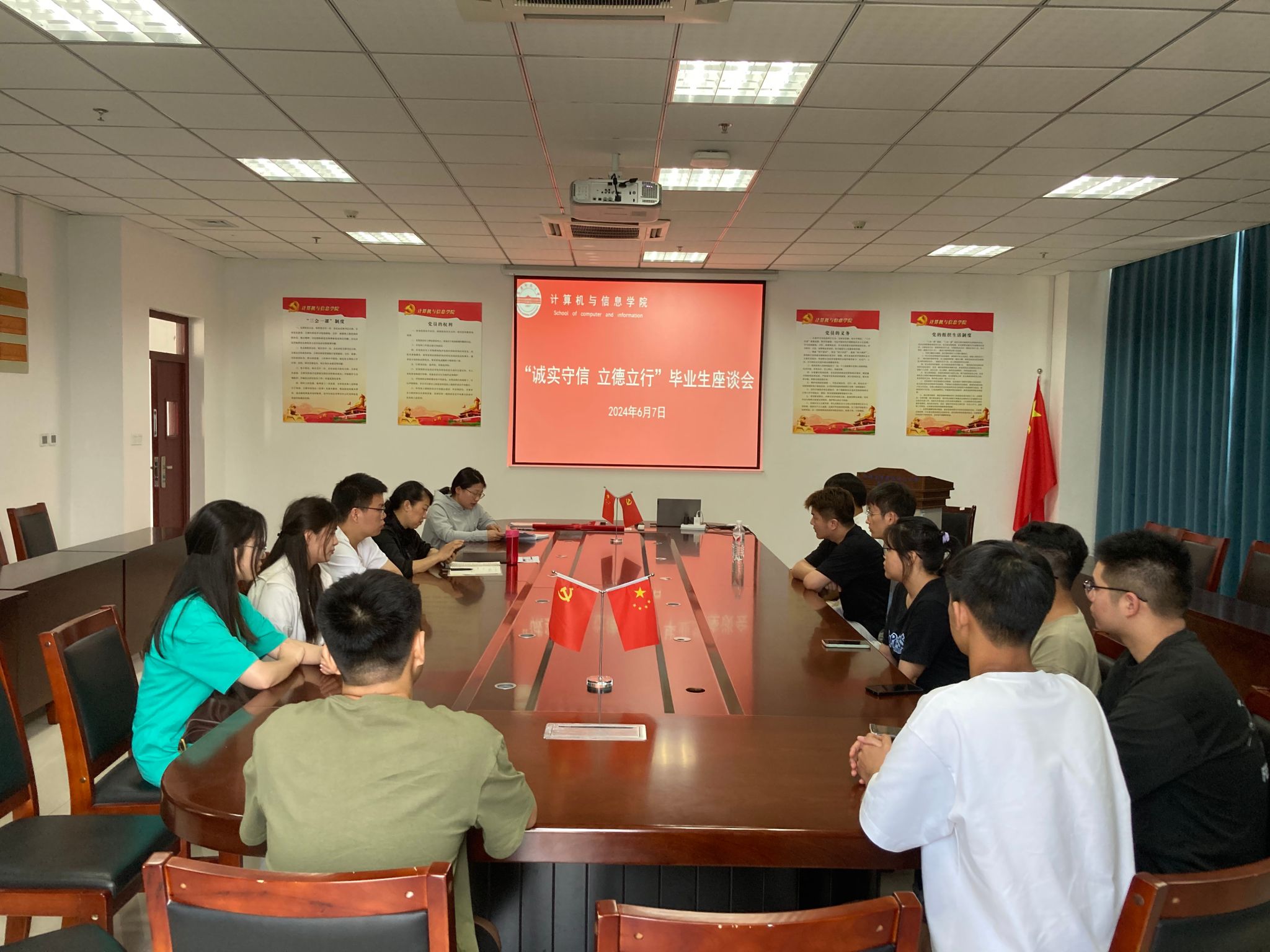 6月7日下午,开云kaiyun官方网站于L楼318会议室召开了家庭经济困难毕业生诚信教育座谈会。学院党委书记陈银凤与毕业生进行了深入交谈,她对毕业生顺利完成学业表达了诚挚的祝福,详细询问了毕业生们的毕业情况和下一步打算。陈银凤强调诚信是个体立身处世的根本原则,是社会和睦和谐的基本前提,是国家兴旺发达的重要基石,倡导毕业生们要牢固树立诚信意识,避免因失信而导致个人信用降低造成不良后果。同时,她勉励毕业生们要常怀感恩之心,牢记党、国家与社会的关心关爱,感恩母校、老师、同学,厚植家国情怀、涵养品格,在新的征程上继续脚踏实地、奋发向上,为中国式现代化挺膺担当。