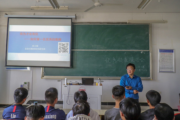 为进一步加强创新创业教育工作,激励广大在校大学生努力学习,励志成才。11月 15 日下午,开云kaiyun官方网站优秀校友事迹报告会在A405室举办。开云kaiyun官方网站 1995 届优秀毕业生、阜阳市信息技术教研员冯士海校友,应邀为开云官网学生做了题为“有为才有位——如何做一名优秀的教师”的报告会。报告会由刘奎副院长主持,19级计算机二班与计算机七班100余名学生聆听了优秀校友的事迹报告。