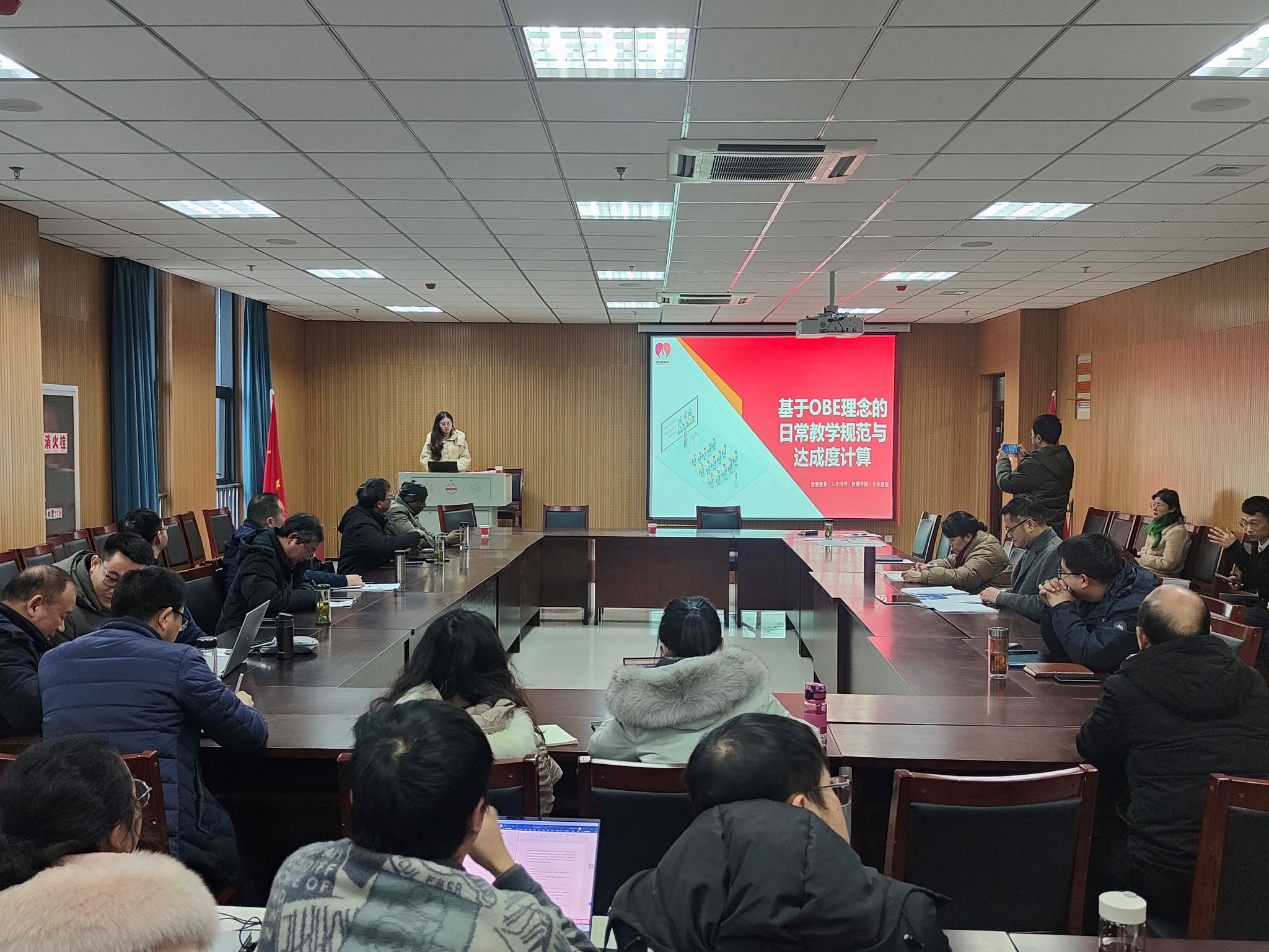 会议第二阶段,安徽爱学堂教育科技有限公司专业技术人员面向全体教师做课程目标达成计算培训,并指导教师按照OBE理念规范日常教学材料的收集与整理。