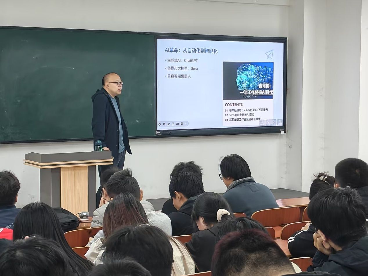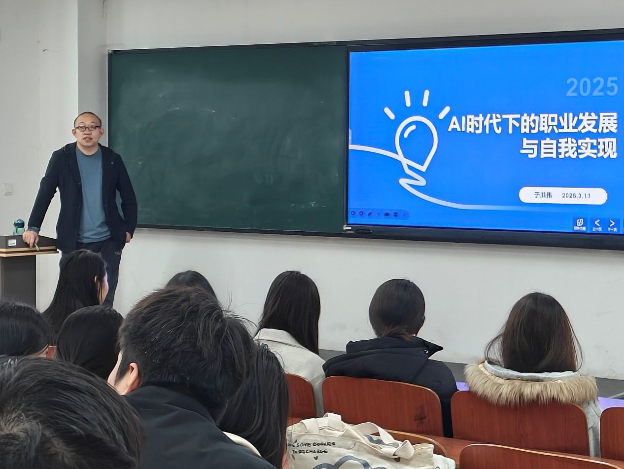 在数字化转型的浪潮中,AI技术正逐渐改变着我们的生活和工作方式。为了协助大家更有效地应对AI时代所带来的机遇与挑战,明确职业发展路径,增强就业市场竞争力,人工智能与大数据学院邀请于洪伟教授于2025年3月13日,在主教1-2教室举行一场以“AI时代下的职业发展与自我实现”为主题的讲座。