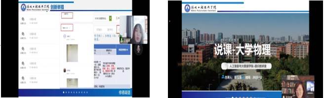 此次大赛以线上腾讯会议的形式开展,参赛教师分别是:数据科学与大数据技术系熊丽丽老师、数据管理与应用系江春然老师、人工智能系梁月肖老师、虚拟现实技术系房子婧老师、智能科学与技术系孙维雅老师、通识教研室邸宝莉老师。参赛人员自选课程内容进行说课,使用PPT辅助,每位老师说课时间不超过15分钟,评委现场进行点评。